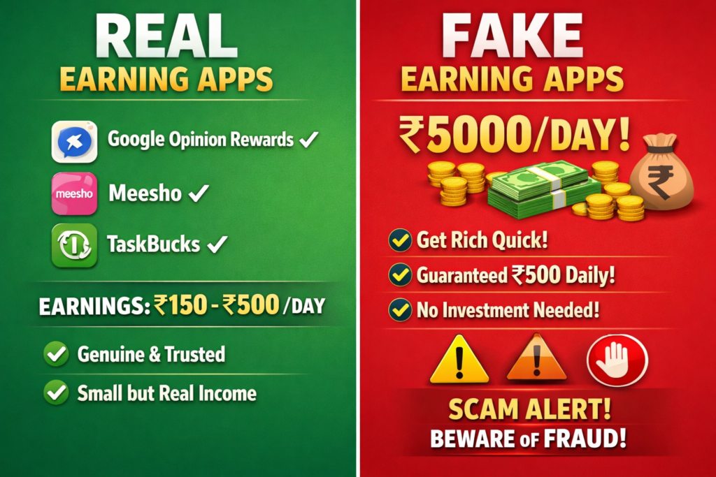 बहुत से लोग Daily Income Apps Se Paise Kaise Kamaye (Real or Fake?) के चक्कर में fraud का शिकार हो जाते हैं क्योंकि वे fake apps को पहचान नहीं पाते। इन बातों पर ध्यान दें: